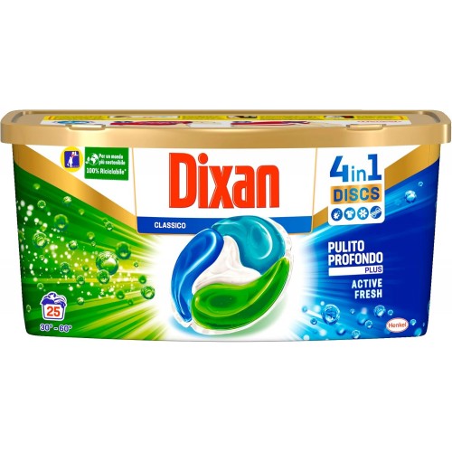 - Potere concentrato Scopri la potente azione smacchiante di Dixan Discs, ora in un formato DISC più compatto dimensioni ridotte, la stessa performance con un minore impatto ambientale